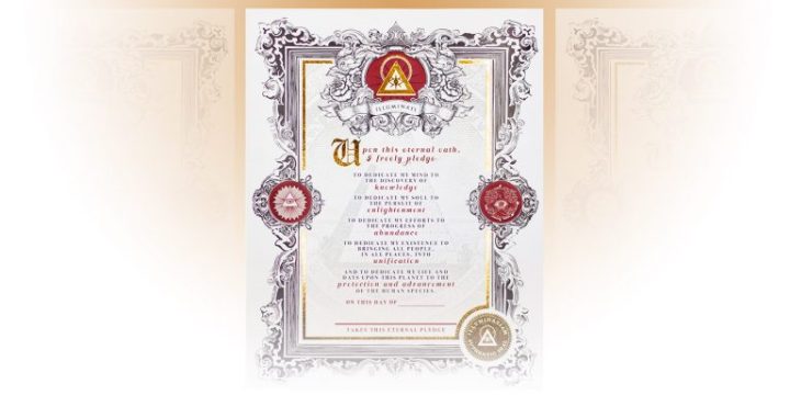Since our origination, Illuminati members have dedicated themselves to the advancement of the human species by taking oaths of commitment. These pledges are a core tradition of the Illuminati, formed as written contracts between a single person and all members of humanity. The first pledge of the Illuminati is called the Eternal Oath.